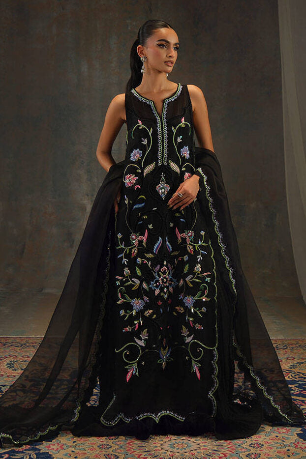 Farida Hasan Jet Black Formal Collection Indian Raw Silk
