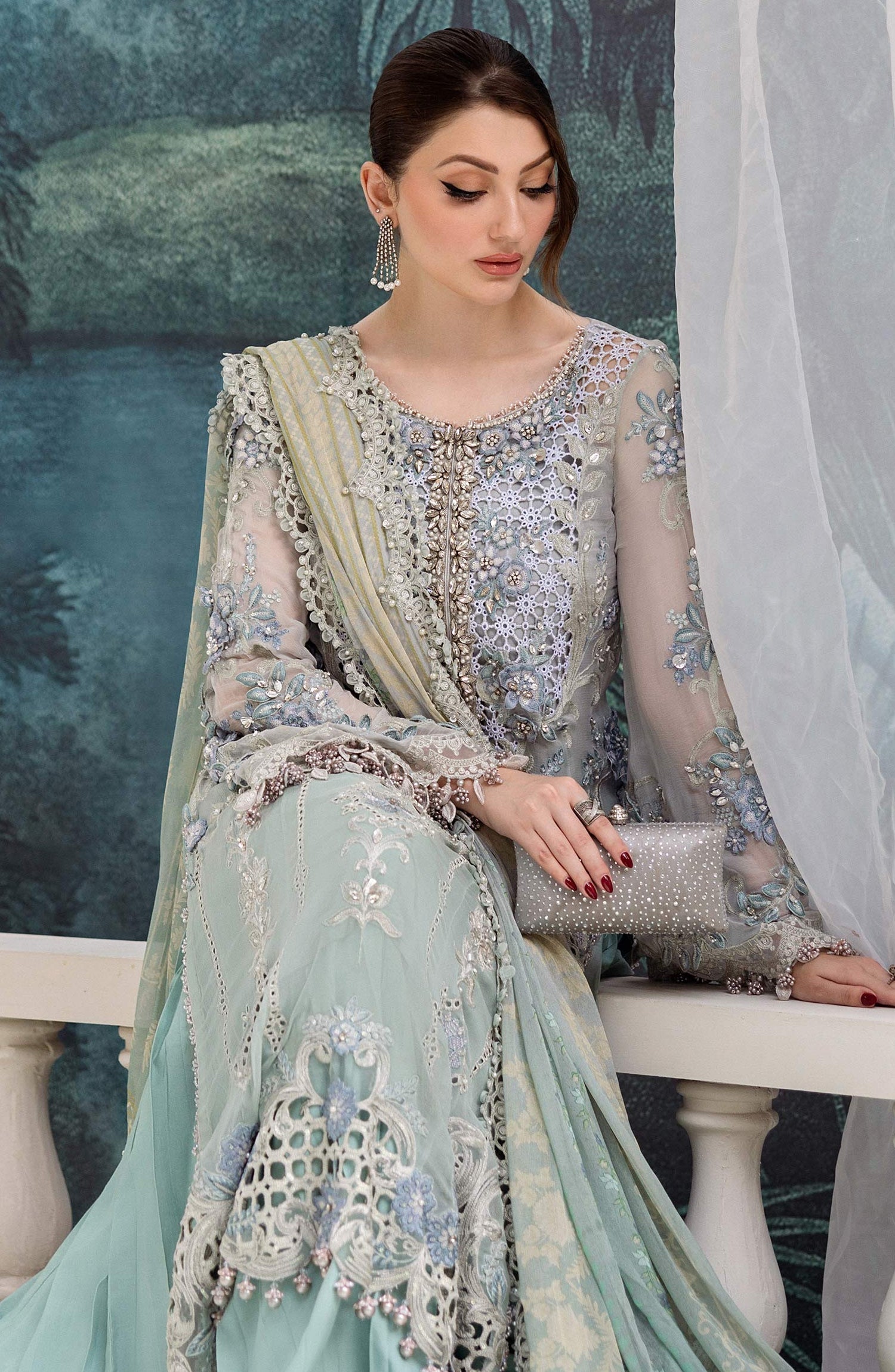 Maria B Embroidered Luxury Chiffon Unstitched 3 Piece Suit Aqua Luxury Collection